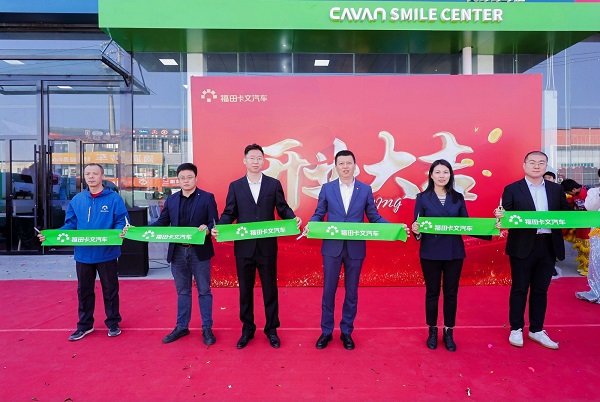 福田卡文汽车商业发展总监任龙、津车运力(天津)物联科技有限公司董事长刘琳为新车揭幕——乐福天津区域上市