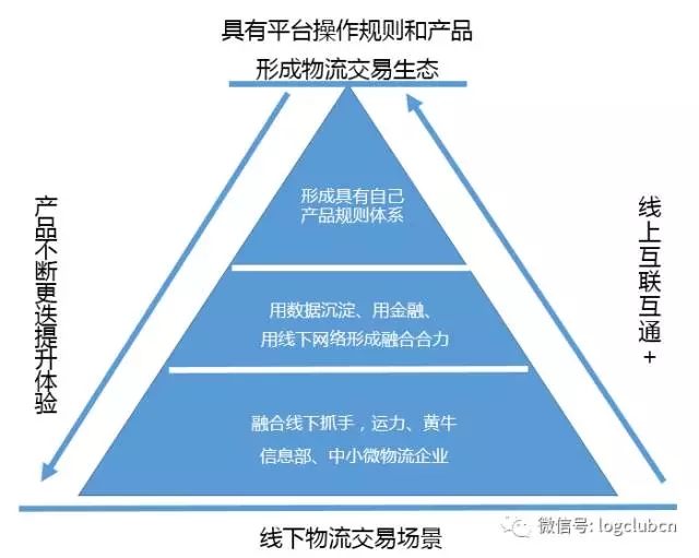 从货源端入手,从信息对接入口,从订单开始,要求信息链接,要求整个交易场景可视化,要求涉及的仓储必须可视,形成一个大平台的开放与协同,完全的打破了物流平台从下至上的过程,形成了强大的数据沉淀,发挥了数据的极致,打造了渠道为王,产品为王的生态王国。