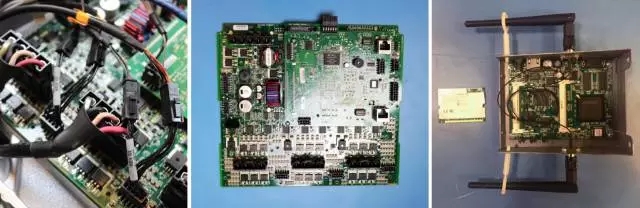 安装FPGA的子板承担了协调无线模块、成像单元、紧急制动、连接红外/压力传感器、电源管理和电机驱动器的功能,大大减轻了主板的压力。MCU是32位,400MHz 的Freescale MPC5123,很可能运行的是PowerPC Linux。 两个以太网端口连接到无线模块和固件存储,它们由一个Mircel KSZ8993切换。