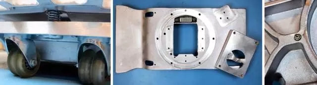 起重结构托盘的顶部是一些厚实的X形铝铸件,这些铸件全部使用319号通用铝。每个铝铸件上还有二次精密加工出来的参考面和螺纹孔。这种工艺在包括汽车发动机和液压泵等设备中大量使用。