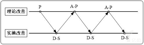 推行改善的时候,管理者首先会在理论上认为可以推行改善。理论的改善包括改善计划,以及为改善活动所做的资源部署。然后,通过实施改善来验证理论改善,并对产生的新问题、新发现进行研究。如图13-1所示,理论改善主要由Plan(计划)和Act(行动)这两个步骤组成;而实施改善则是由Do(执行)-study(研究)这两个步骤组成;这两方面组成了推行改善的“PDSA程序”。