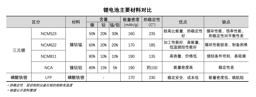考虑安全性及续航能力,磷酸铁锂及三元锂离子更适合用于电动汽车,两者之争已是老生常谈。简单来说,磷酸铁锂电池便宜、耐用、较安全,而三元锂电池储电多、续航能力更强。对于看重续航能力的新能源车企来说,三元锂电池是大众之选。