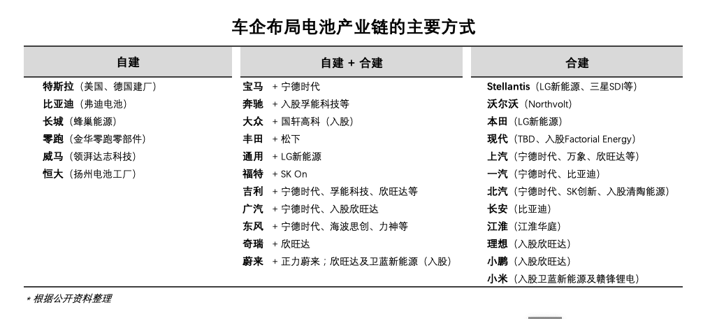 车企自建、合建、入股电池厂 争取动力电池主动权