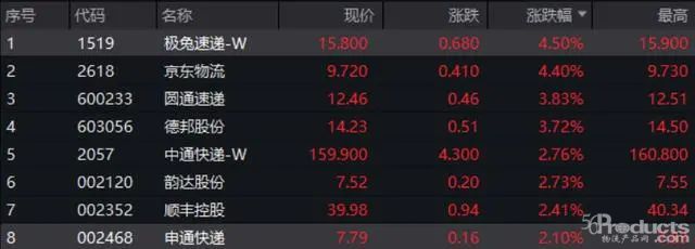 截至收盘,A股上市快递普遍上涨超2%,其中——