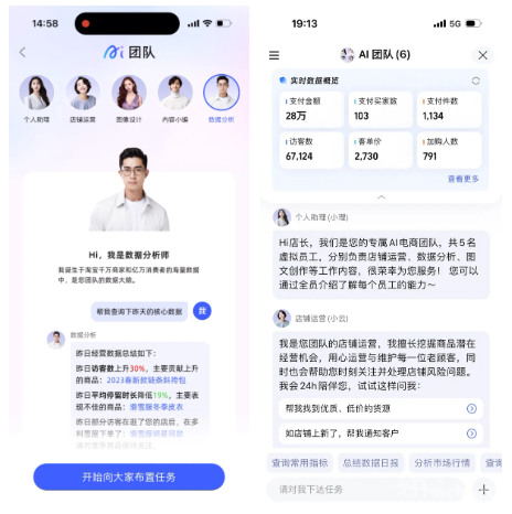 5名虚拟员工掌握电商经营129项技能,可代理80%繁杂工作。
