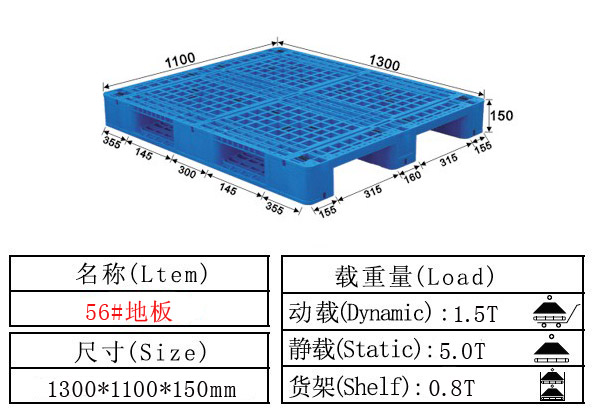 耐老化性、防静电性、抗冲击性。双面热合平板、一次成型双面网格、单面川字底、单面田字底、九脚型各种规格尺寸齐全。适用于