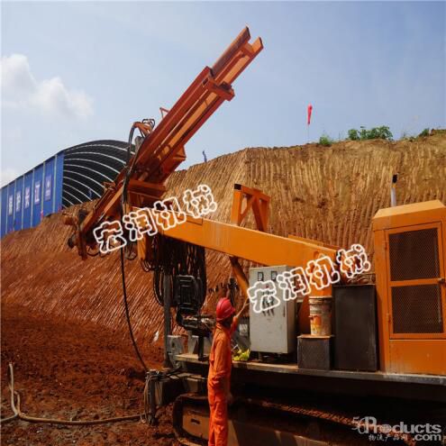 护坡锚固钻机主要适用于:建筑、水利、勘探、深基坑支护,边坡加固等工程,尤其适用于基坑锚杆孔、建筑工地钻探,该钻机采用履带式底盘,行走方便,配套使用麻花钻杆,三叶合金钻头,优点是钻臂的行程高度可达到5.5-20米,日钻孔效率可达400-600米,大大节约了人工成本。