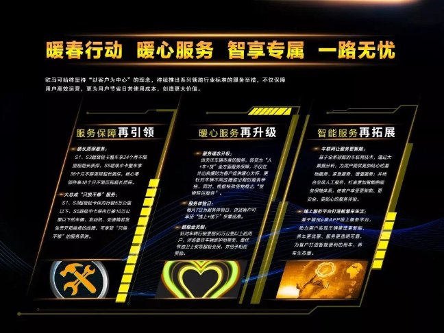 同时,为了保障快递运输的高时效性,欧马可还针对快递运输行业高出勤率、高服务及时性的需求,推出了定制化服务——“定点式+顾问制”服务模式与车队服务管理体系。依托全国700多家服务网络与国内最大汽车企业呼叫中心等完善的服务设施,欧马可在高速公路沿线建立了保障网络,并为用户提供专职服务管家服务,24小时全天候值守,第一时间接到用户需求,并在15分钟内启动救援服务。此外,欧马可还会定期开展大客户驾驶训练营,提升司机驾驶技能,助力用户降低运营成本。