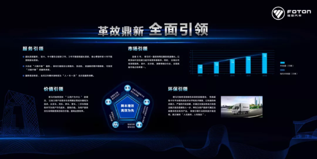 作为高端中轻卡领导者,福田欧马可始终秉承“以用户为中心”的理念,致力于为用户打造更具价值的解决方案,并将科技引领、环保引领、服务引领、价值引领作为领导者必须践行的责任,不断创新前行,持续引领行业发展方向。