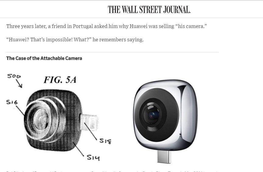 《华尔街日报》单方面引用此人的说法称,在2014年时华为曾“主动”接触此人,希望购买他的摄像头设计专利,但最终未果。可3年后他却发现华为却“窃取”了他的设计,并开始威胁要起诉华为。