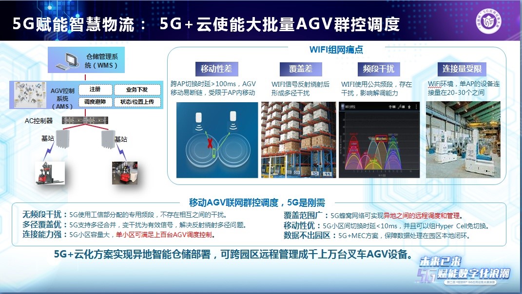项目由杭叉集团牵头,在中国电信的大力支持下,在华为公司、浙江大学共同参与下,通过研发5G在AGV领域中的应用,解决目前AGV在应用中的痛点,助力全球智能物流的转型。主要内容包括:1.通过5G+视觉技术,用深度相机和摄像头替代进口昂贵的导航传感器和安全传感器,使单车硬件成本下降50%,同时减少环境改造成本60%以上。2.采用5G+云化技术实现异地设备间的通讯,同时利用5G大连接、低时延的特性,将单AP设备连接数从几十台增加到5G环境下的上千台,AP间切换的时间从百毫秒锐减到毫秒级。3.采用5G边缘计算技术和切片技术,保证系统层面的安全运行。AGV车体上采用视觉检测,将安全检测从线检测提升到面检测,保证设备运行时的安全性。