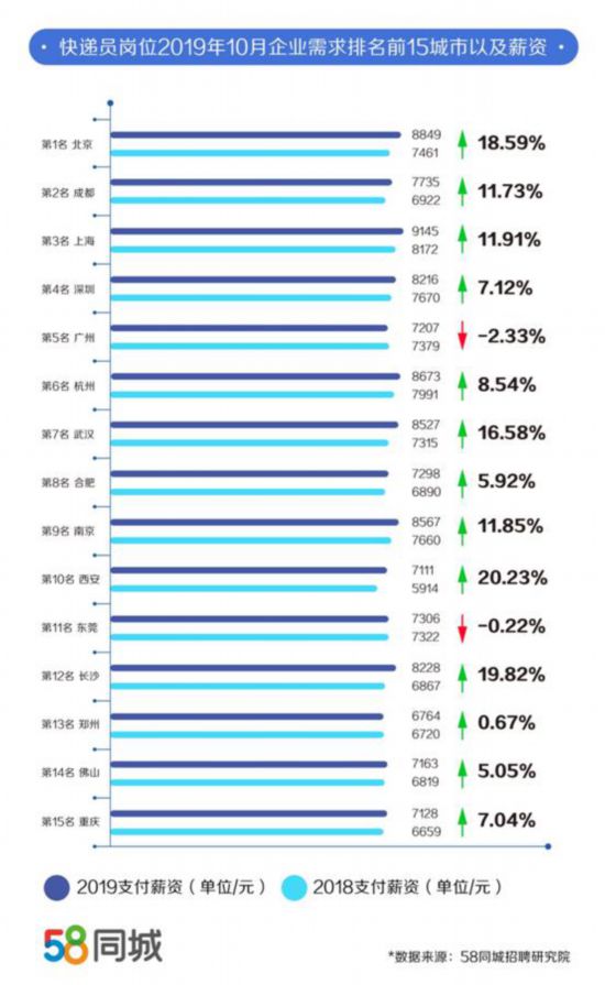 上海快递员薪资达9145元,西安企业支付薪资增长超20%