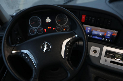 “早前有位开北奔重卡的司机,在山东的一条国道上行驶时因疲劳驾驶开着车睡着了,车辆跑偏冲出国道,因为车里惯性非常大,撞倒了路边好几棵碗口粗的树才停下来,好在我们的驾驶员毫发无损。现在很多重卡的安全性说的比较片面,什么驾驶室全钢啊、可以后移啊!我们北奔是比较综合的,用的是上海宝钢的st16钢板,钢板的强度比较强,它是经过奔驰认证的。目前国内用这种强度的钢板只有北奔,既保证了强度也保证了表面的光滑,还能保证驾驶室的延展性,在车辆发生撞击后,可以保证驾驶室后移。还有一点是我们的车底盘比较高,大梁不易变形。