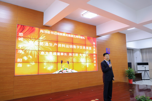 惠龙易通施文进董事长就“惠龙易通生产资料运销数字交易展望”主题作演讲。
