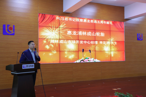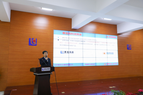 惠龙易通合作厂家高科石化、浦林成山、河南弘康的负责人向参会嘉宾介绍定制的惠龙专品,分享销售经验。