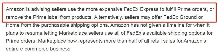 究其原因,就是因为亚马逊在最关键的12月旺季前,把自己的长期物流合作伙伴FedEx拉进了黑名单,并且禁止第三方卖家使用FedEx配送Prime订单。