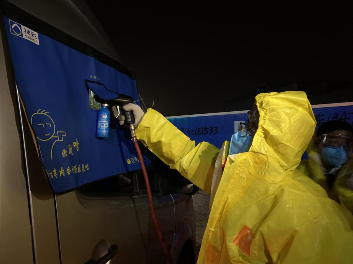 图:对武汉一线往返卡车不分品牌一视同仁,统一接受灭菌服务