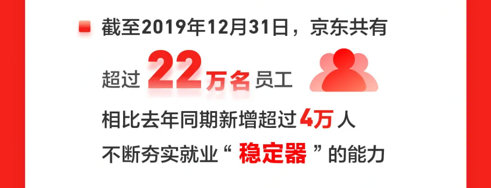 3月2日,京东集团发布了2019年第四季度及全年业绩,主要核心业绩指标均超预期,其中全年净收入同比增长24.9%,净服务收入同比大幅增长44.1%,股价在近14个月内暴涨超过100%。除了业绩外,财报中涉就业的数据也很“亮眼”:2019年京东新增员工超4万人,创历史新高,也远超2019年年初计划增加的1.5万个岗位,还为社会间接创造了超过1500万个就业机会。