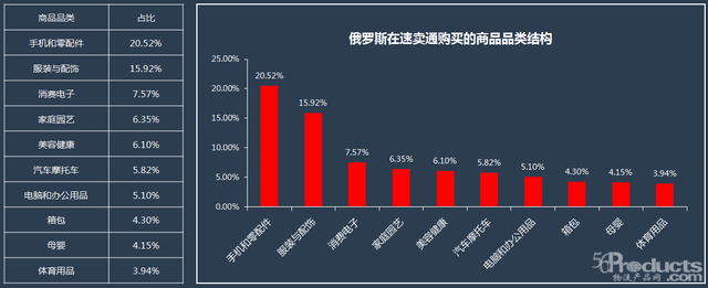 3.俄罗斯在速卖通购买的商品品类结构排行。