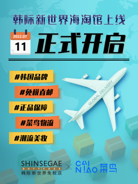 7月11日,韩国三大免税店巨头之一的韩际新世界免税店宣布首次开通非免税销售渠道。中国消费者无须入境韩国,只需登陆韩际新世界免税店中文网上商城即可选购上千种美容、时尚、健康等国际大牌。下单后的包裹,将由韩际新世界免税店指定物流合作伙伴菜鸟进行跨境和国内配送。