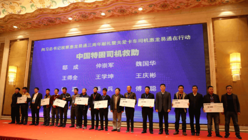 早在2015年,惠龙易通就在交通运输部、公安部、中物联的指导下,开展“关爱卡车司机惠龙易通在行动”活动。面向全国货运行业的卡车司机,组织评选“中国好司机”给予每人1万元奖励,救助“中国特困司机”给予每人1.2万元补助。同时,组织发动各地加盟代理单位在全国开展关爱救助事故司机的行动,涌现出甘肃玉门市新信通物流王财、山西惠远物流关长斌等一批救助关爱卡车司机的优秀会员管理单位和先进代表。