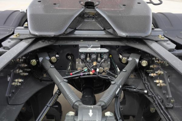 以车架为例,乘龙H7康明斯530马力LNG牵引车整车采用高强度单层车架,在重量降低30%的情况下,强度不降反升,提升了50%。同时,乘龙H7康明斯530马力LNG牵引车还采用了分体式轻量化悬架、轻量化440双后桥、铝合金轮毂、零部件合理降重、发动机降重等多元轻量化设计。