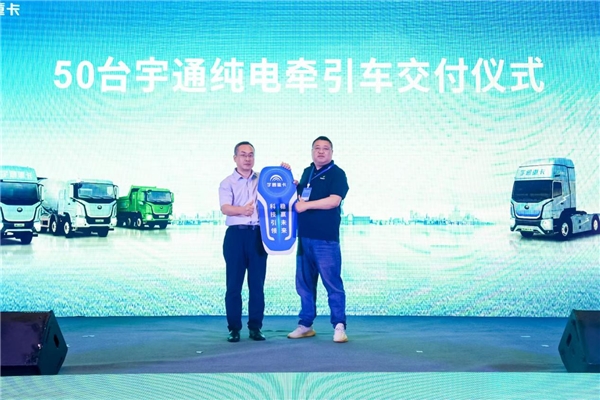 与此同时,活动现场50台宇通纯电牵引车批量交付绿新能源科技有限公司,可靠的产品和服务收获客户的广泛好评。宇通重卡的到来,让更多陕晋地区的客户提升运营效率,提高盈利能力。