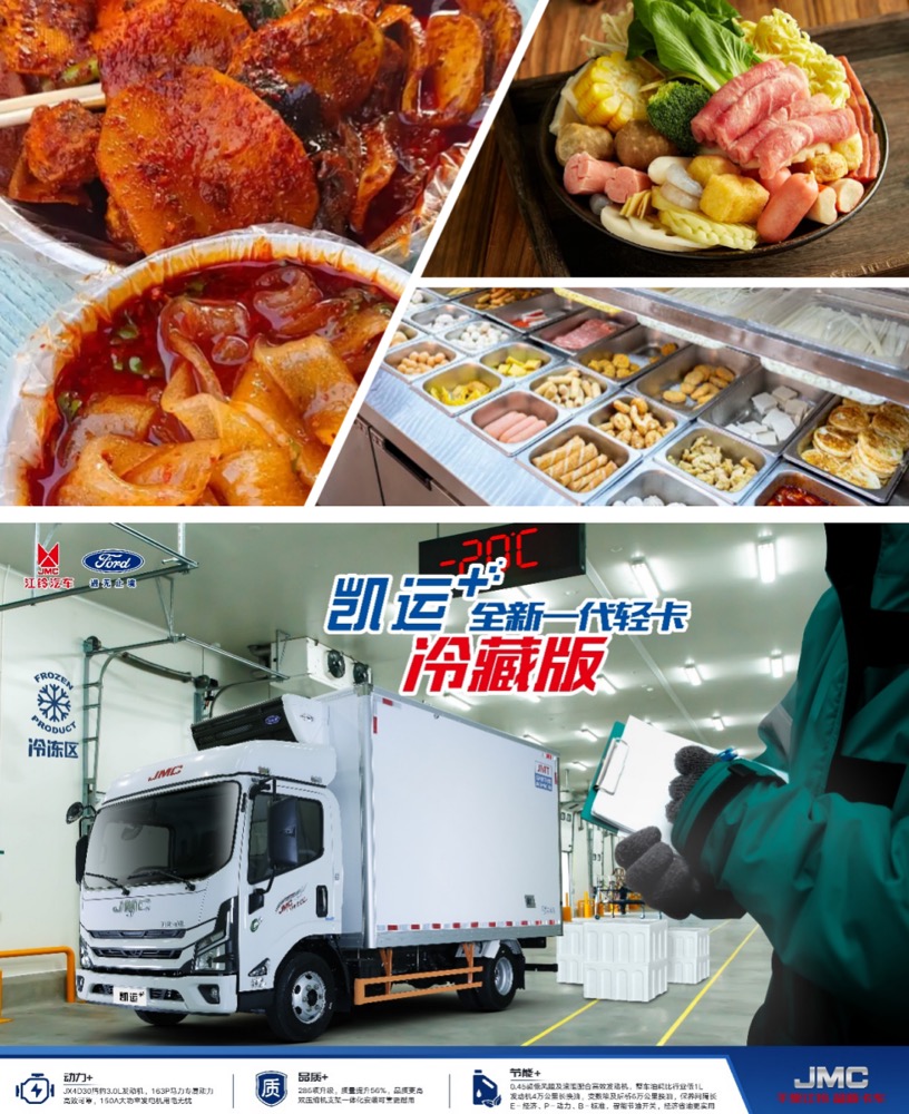 “食以食材为先”,麻辣烫的冷冻食材存在易腐性和易坏等特征,保证天水麻辣烫果蔬食材鲜美齐全,一定离不开高效、可靠的冷链配送。江铃轻卡深耕行业 40 年,是业内公认的高品质轻卡领导者”,江铃凯运+大马力冷藏车凭卓越的品质和先进的冷藏技术诠释了冷藏运输的新高度,为运输保持恒定低温的生鲜食材提供了可靠保障,自然是天水麻辣烫冷链配送的首选车辆。