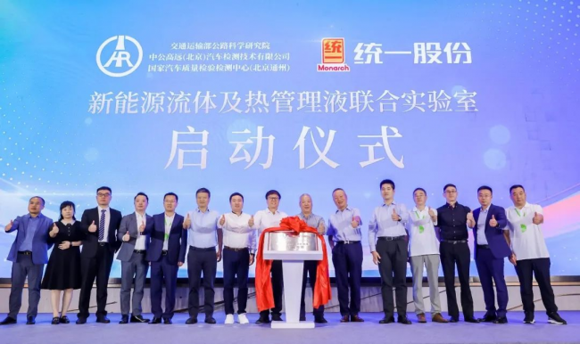 在“新国标”基础上,交通运输部公路科学研究院所属企业,国家汽车质量检验检测中心(北京通州)法人单位——中公高远(北京)汽车检测技术有限公司(以下简称“中公汽检”)与统一股份全资子公司统一石油化工有限公司(以下简称“统一”)成立新能源流体及热管理液联合实验室,旨在延续“新国标”技术路线的一致性、前瞻性,持续护航新能源汽车产业安全发展,全面、快速、安全解决新能源车主的后顾之忧。