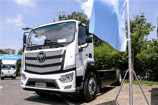 纯电动冷藏车主要应用于续航180-350km的城配冷链运输场景,欧马可智蓝推出77- 123度不同电量电池产品组合,满足冷链用户多样化的运营需求;混动冷藏车主要应用于500公里以上的城际运输场景,依托P2技术构型,采用158马力2.5动力+98马力电机组成的双擎配合绿控6 AMT变速箱,赋予整车强劲的动力输出,更好满足肉类、海鲜水产、速冻食品等货物质量较大的货物运输需求;氢燃料技术路线,欧马可智蓝推出搭载80kw电堆的氢燃料冷藏车,满足城配标载客户需求。