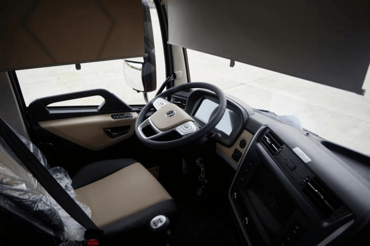 天锦Plus驾驶室采用平地板、全悬浮设计,行走坐卧伸展自如;全包围零重力皮质座椅、四点气囊减震、集成安全带、搭配多功能方向盘,带来便捷舒适的驾乘体验。12.3寸+10.1寸液晶双屏,配合语音识别技术,轻松实现双屏互联、人机互动功能。