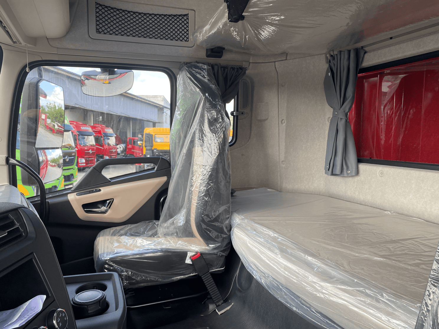 此外,内部还采用700mm+80mm加宽加厚椰棕卧铺、360°隐私帘、天窗等设计,驾驶室内隔音低至52分贝,为长途驾驶提供了更加舒适的休息环境;车辆行驶过程中,环景影像和盲区监测功能随时响应,最大限度保障人、车、货安全。