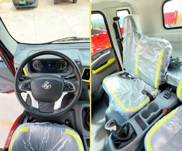 在提升驾乘体验和操作便利性方面,乘龙L2自卸车也下足了功夫。车辆采用2米宽体驾驶室,环抱式中控台设计,让各项操作按钮触手可及;皮质方向盘和气囊座椅,有效缓解卡友运输过程中的疲惫。此外,双层密封隔音设计可隔绝外界噪音,冷暖空调快速调节车内温度,再加上多处大容量储物空间,轻松收纳工具、衣物,告别传统自卸车噪音大、环境差的问题。