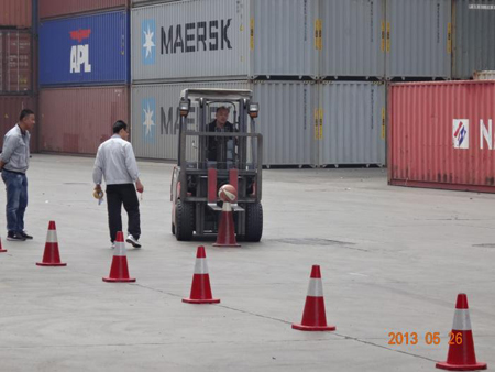 为使客户对安全操作有更为直观的印象,将安全培训的要点运用于实际操作,力至优为客户精心设计了一套叉车操作竞赛流程——运篮球绕桩竞赛。由于竞赛流程中所涉及到的动作均为客户再日常叉车使用中的常用操作,有助于提高客户的安全操作意识。
